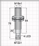 Item # FCM1-1805C-ARU4, M18 DC 2 wire Inductive Proximity Sensor, N.O., Shielded, Sensing Distance = 5mm, Q.D. M12 4 pin micro connection, Body length = 78mm